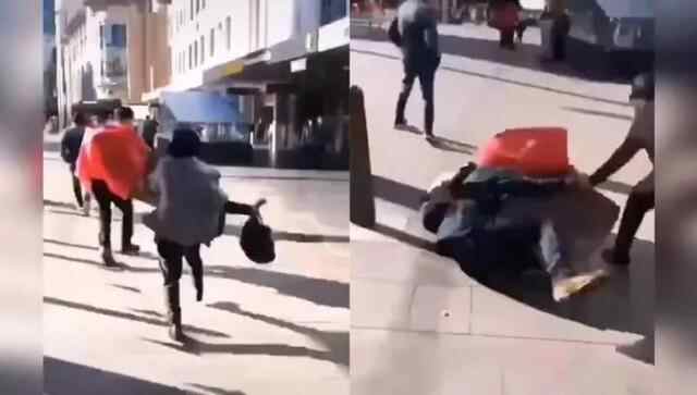 目击者发来的视频显示,该“港独”极端分子从背后突袭了正在走路的中国留学生。而这一幕正好被人群中的一位华人大妈看见。大妈感到愤愤不平,先是大骂该示威者,怒斥其“汉奸”。在偷袭逃走后,该“港独”极端分子竟然重回此地,继续高调举牌支持分裂。