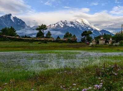 位于喜马拉雅山南麓的西藏日喀则市吉隆县吉隆镇,距离尼泊尔边境仅23.5公里,自古就是中国西藏与尼泊尔交往通商的要道。巨大的海拔落差造就了吉隆独特的生态环境,这里湖泊众多,高山雪峰林立,原始森林密布,自然风光秀美,被誉为“珠穆朗玛峰后花园”。图为上图:2019年8月22日拍摄的吉隆镇至乃村的道路;下图2018年11月1日拍摄的吉隆镇至乃村的道路。(拼图) 中新社记者 何蓬磊 摄