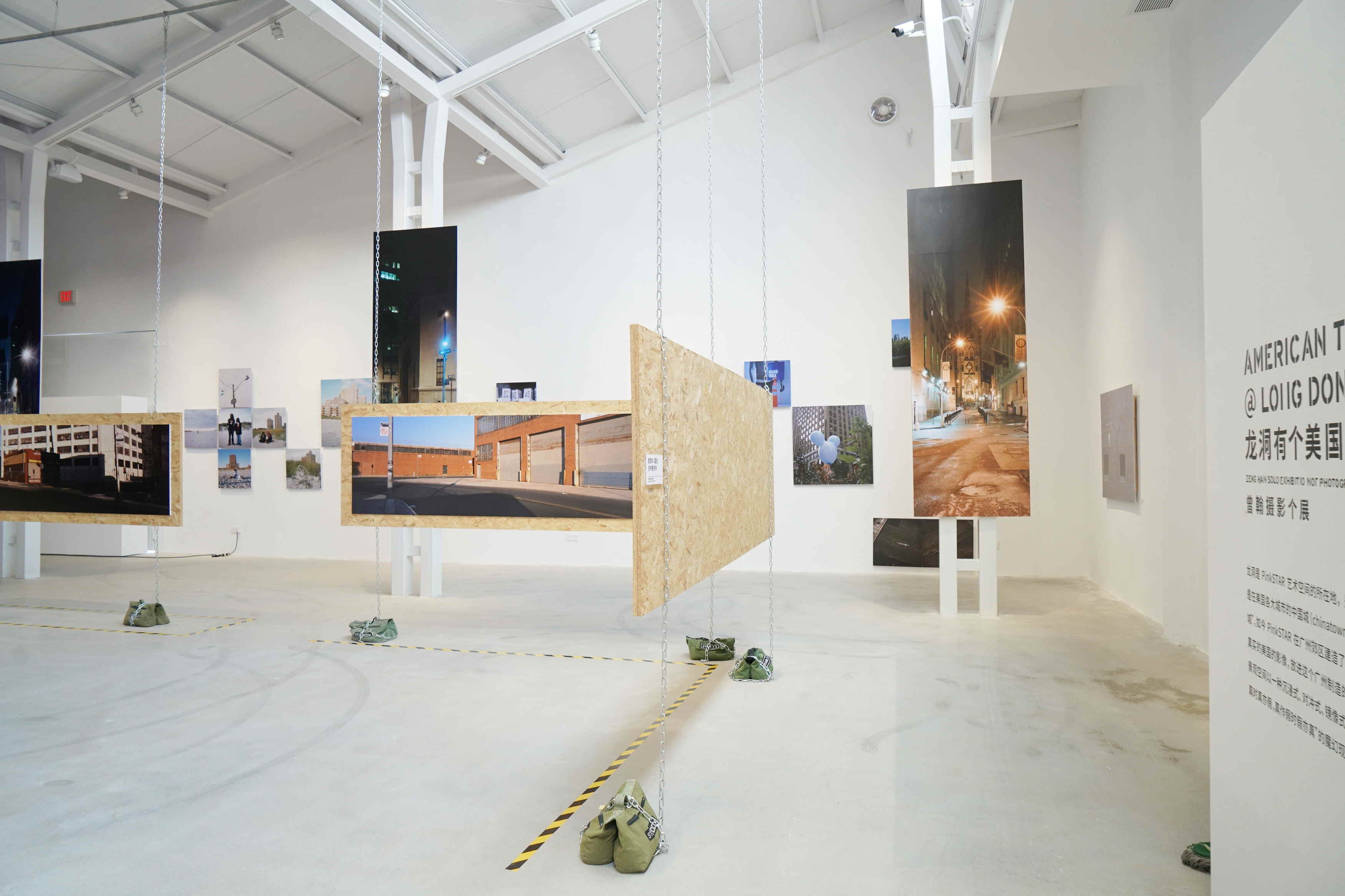 原来,位于龙洞地铁站附近的布展地PinkSTAR摄影城确实是一个仿真的美国小镇。曾翰拍摄的关于真实的美国的影像,放进这个广州制造的“美国城”,让真实的美国影像和模拟的美国景观空间以一种沉浸式、对冲式、镜像式的摄影展览,营造出了一种关于美国的“假作真时真亦,真作假时假亦真”的魔幻现实主义观感。