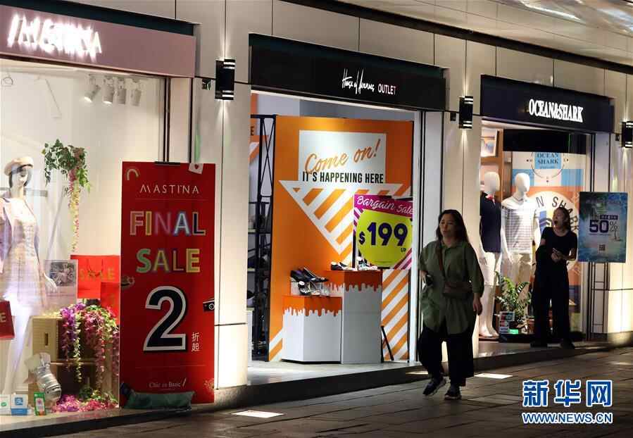 香港尖沙咀附近的商店张贴打折信息以吸引顾客(8月23日摄)。新华社记者 李钢 摄
