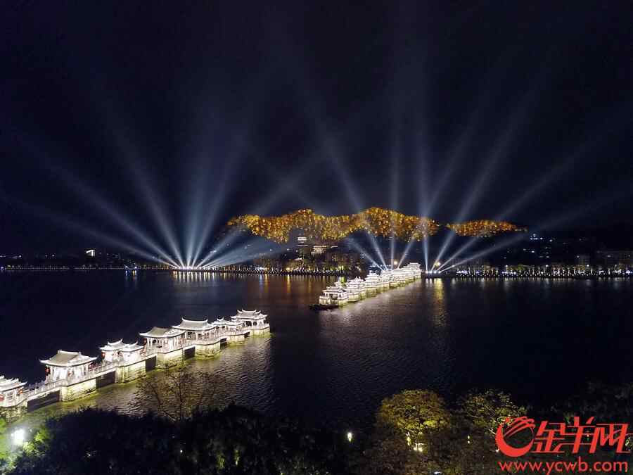 潮州广济桥“凤城之光”灯光秀。羊城晚报记者 宋金峪 梁喻 摄