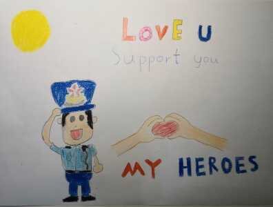“警察叔叔,多谢你保护香港,我们都支持你,加油啊”
