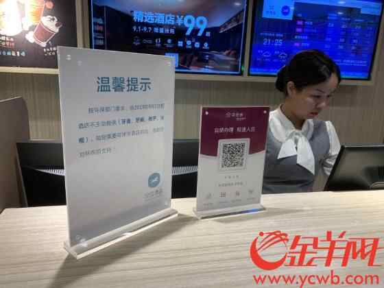 广州汉庭酒店天字码头分店,前台提示不再主动提供部分一次性用品 梁怿韬 摄