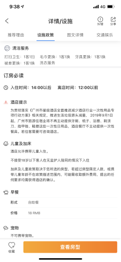 除了在前台和客房设置提示外,广州所有星级酒店和部分非星级酒店也在携程、飞猪平台的“订房须知”一栏下提示酒店不再主动提供一次性用品,保证住客从平台上订房时就能得知这项安排,并提前准备所需用品。