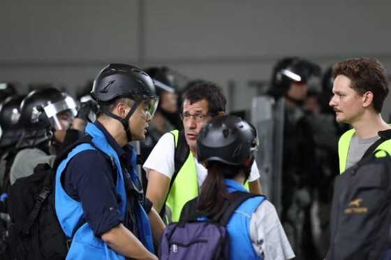 队员们告诉记者,香港并没有一个法定机构统一发放记者证,加上现场比较混乱,他们要分辨记者身份也是比较困难的。