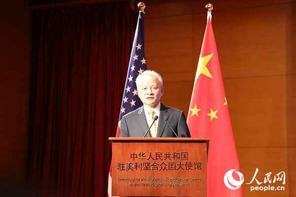 中国驻美国大使崔天凯在招待会上讲话。张梦旭摄