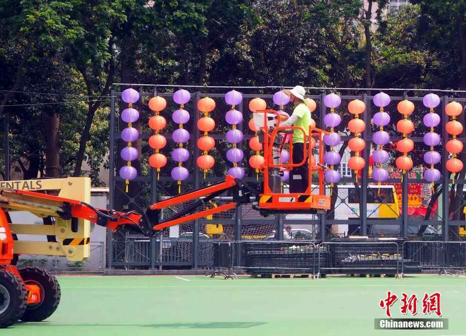 工人在香港维园装扮彩灯,准备迎接中秋节。中新社记者 洪少葵 摄