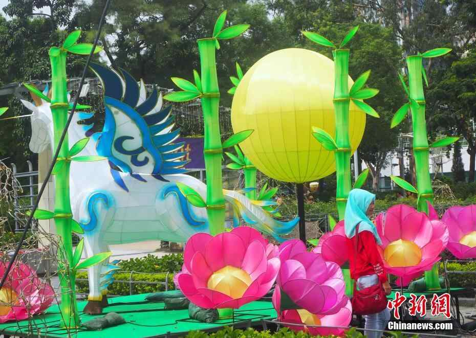香港维园装扮一新,吸引途人驻足留影。中新社记者 洪少葵 摄