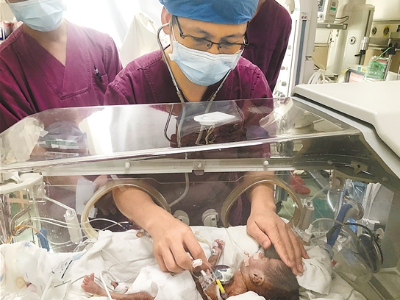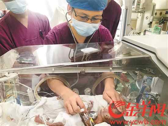月月被迅速转运到医院NICU(新生儿重症监护室)的特殊保温箱(高档婴儿培育箱)里。“体温的维持对宝宝非常重要,如果维持不好,孩子的生命体征就不稳定,很容易引起颅内出血和新生儿寒冷损伤综合征。”吴繁说,为了保障救治顺利,他带着由3名医生和6名护士组成的团队,重点放在了月月身上,“除了每天三次的常规查房,没事我们就去看看她,她插着管,也没法哭出来,所有的监测都靠仪器、靠医生的眼睛。”吴繁说,有时候不放心,每半小时就去看一次。