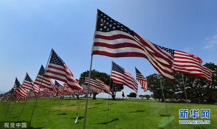 美加州一大学树起数千面国旗 悼念“9·11”事件遇难者