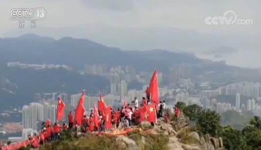 香港:庆祝新中国成立70周年 狮子山国旗舞动