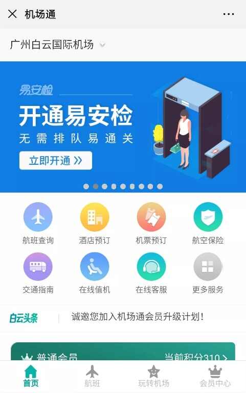 (注:“易安检”目前仅适用于一年内累计从广州出发乘机10次以上的常旅客。旅客凭二代身份证购买机票后,需按正常流程先完成值机和托运手续。)