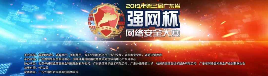 2019年9月22日,第六届广东省网络安全宣传周主体活动之一:广东省第三届“强网杯”网络安全大赛决赛将在广东外语外贸大学南校区体育馆举行。