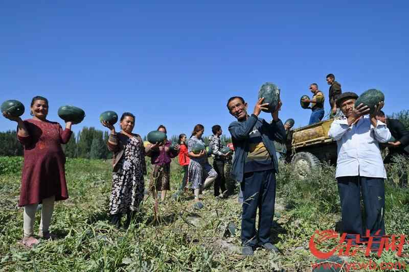 在这个美好的节日来临之际,羊城晚报特派全媒体记者团走进新疆喀什地区疏附县,见证当地农业、农村、农民喜庆丰收。疏附县位于帕米尔高原的东麓、塔里木盆地的西缘,冰山融水的季节性滋润、北纬39.39度天然气候的涵养、达20℃的昼夜温差,让这里一年四季“瓜果飘香”。