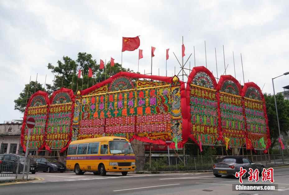 9月23日,香港西贡街头国旗飘扬,彩旗招展,花牌林立,洋溢着喜庆气氛。