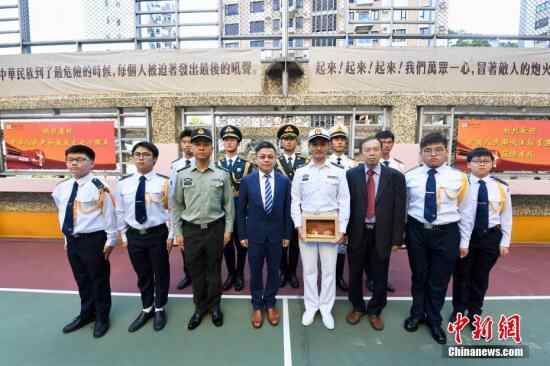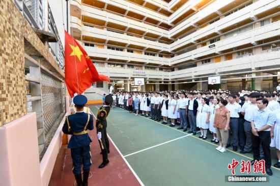 9月23日,中国人民解放军驻香港部队仪仗队官兵到香港培侨中学,为该校举行升旗礼,迎接中华人民共和国成立70周年。 中新社记者 李志华 摄