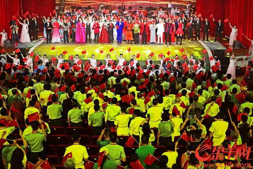 最后一曲,在男高音歌唱家戴玉强和全体参演人员的带领下,全场观众一起合唱《我爱你中国》。许多观众手中五星红旗舞动,眼眶也湿润了。