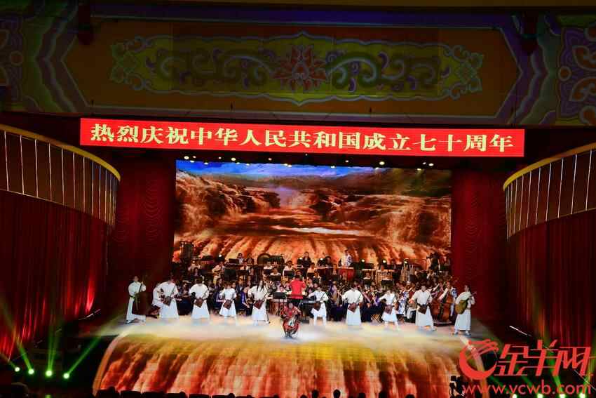 9月27日晚,一曲喜庆欢快的广东民乐《喜洋洋》在广州中山纪念堂中响起,“国乐颂中华——广东省庆祝新中国成立七十周年民族音乐会”随之拉开序幕。《黄河》、《彩云追月》、《在希望的田野上》、《爱我中华》、《我爱你中国》……一曲曲具有中国特色、岭南风味的乐曲在纪念堂内奏响。男高音歌唱家戴玉强等国内著名国乐艺术家、国内顶尖乐团、民乐世家、国乐新秀和港澳著名演奏家,以广东音乐和岭南文化向新中国成立70周年献礼。