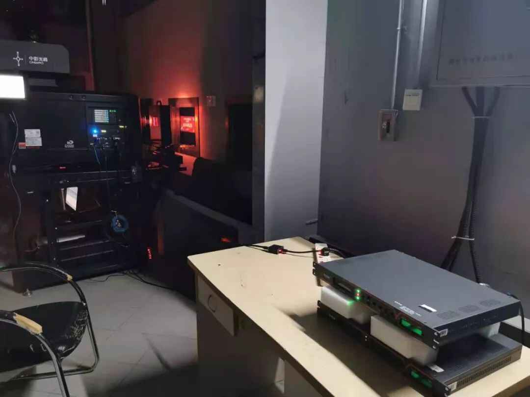 △画面右下方的小黑盒子就是接收4K超高清直播卫星信号的关键,总台技术人员辛勤调试了半个月,以确保播出效果。