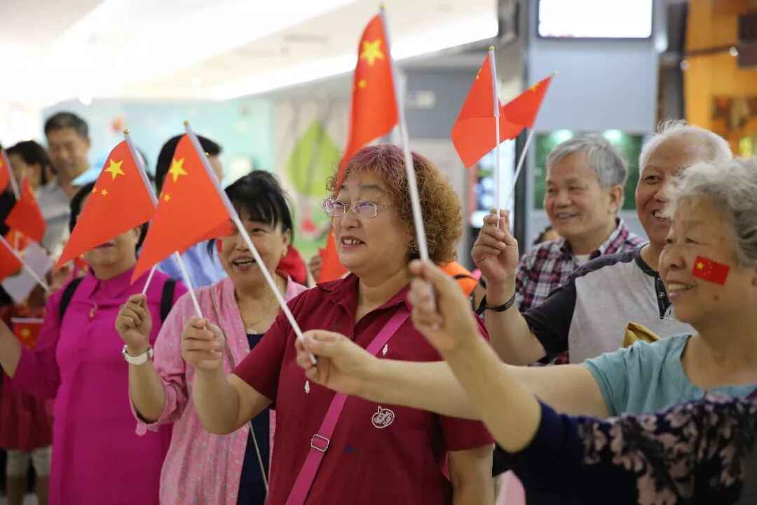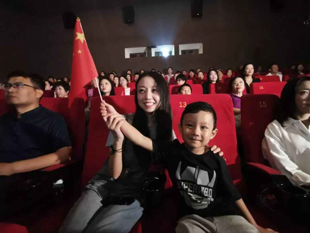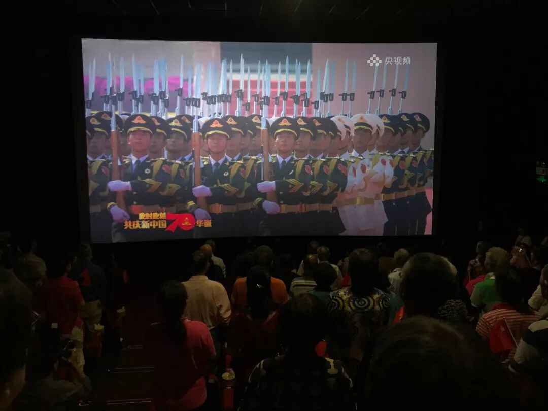庆祝大会开始,在场观众不由自主地鼓起掌。当听到国歌响起,全体观众纷纷站立,齐声高唱国歌。影厅成为爱国之情的海洋,对祖国深挚的热爱和自豪交织在一起,让人心潮澎湃。