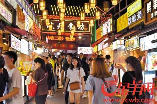 入夜,大学城贝岗村状元食坊是大学生们甚爱的觅食地