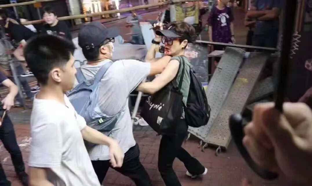 该女子的正义举动却惹来暴徒不满,有暴徒以粗言辱骂,甚至以黑漆喷污其脸部。其间,有香港市民恐她有性命危险,曾一度将其拉离现场,并劝其快走。