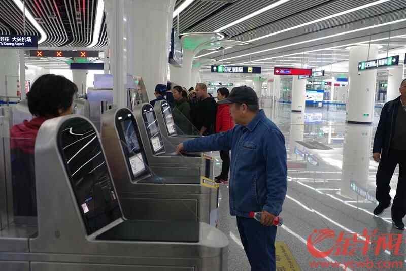 27日,记者乘坐南航CZ3116航班从大兴机场前往广州的航班,并体验了北京地铁草桥站的城市航站楼值机服务。