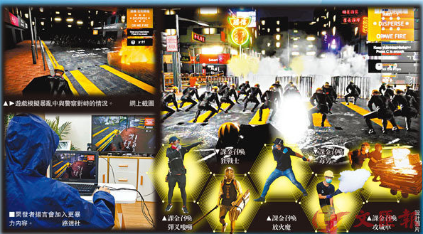 报道称,该款游戏通过模拟画面和特殊音效,刻意美化黑衣暴徒如何破坏香港社会秩序,包括阻塞道路、大肆纵火的景象,游戏的简介更公然叫嚣要“以血肉之躯抵抗暴政”,就是怂恿游戏操作者“如何应对警察及冲击警方防线”。对此,业内人士痛批,在香港目前暴力活动依然猖狂的情况下,应禁止这种公然渲染暴力、特别是以香港暴乱为场景的游戏在网上出现。