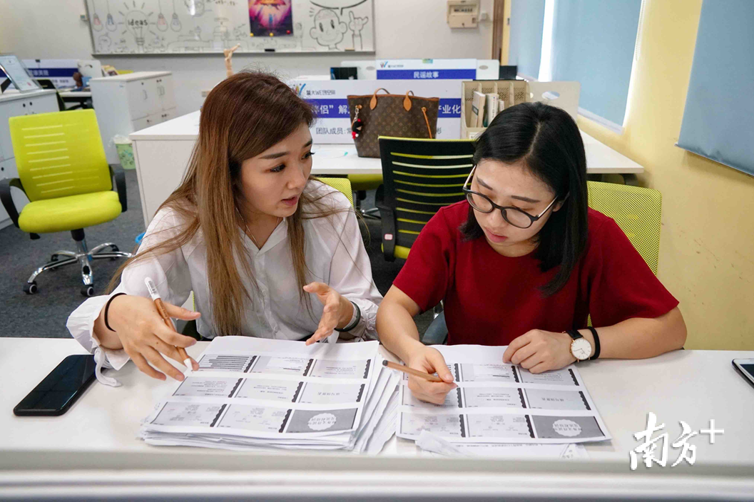 位于暨南大学的创业基地WE创空间,林杉杉和团队正在商量项目的最新进展。今年,她和团队成立了暨承信息科技有限公司,帮助港澳青年更好地融入粤港澳大湾区创业就业。