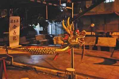 10月24日,香港茶果岭一艘退役的龙舟被固定在木架上。