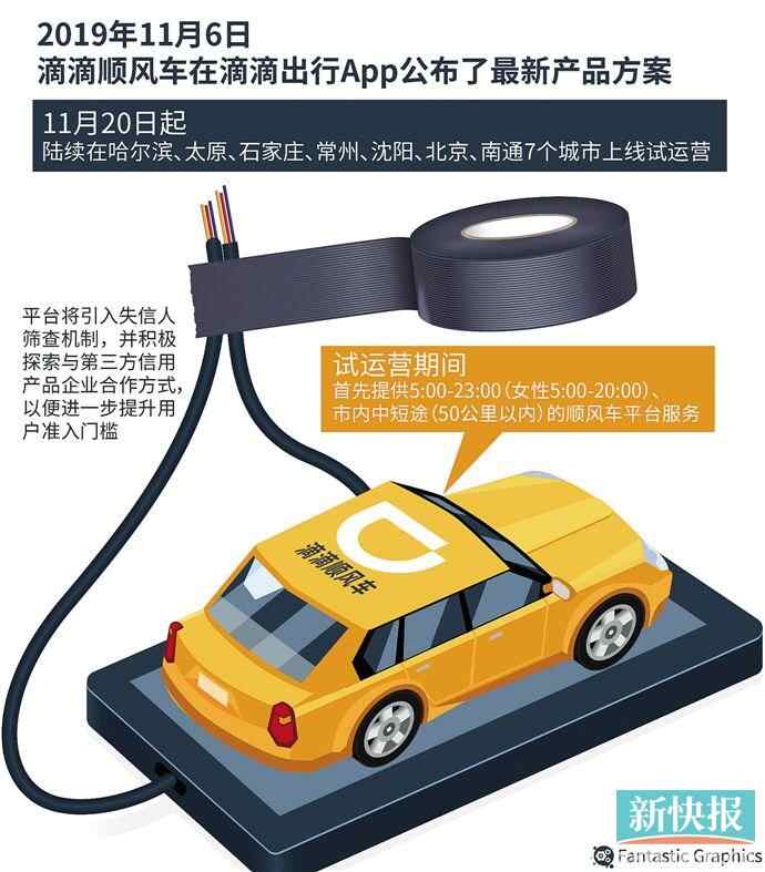 下线400多天后,滴滴顺风车将重新开始试运营。昨日,滴滴顺风车在滴滴出行APP公布了最新产品方案,同时宣布将于11月20日起,陆续在哈尔滨、太原、石家庄、常州、沈阳、北京、南通7个城市上线试运营。与此前相比,滴滴顺风车现在对车主的筛选有了严格准入门槛,并去掉了社交标签等功能,回归了共享经济的本质。对于后续计划,滴滴出行回应新快报记者称,“首批7个试运营城市上线后,将根据试运营城市的用户反馈,持续优化产品,改进方案,之后再决定下一步开城计划。”
