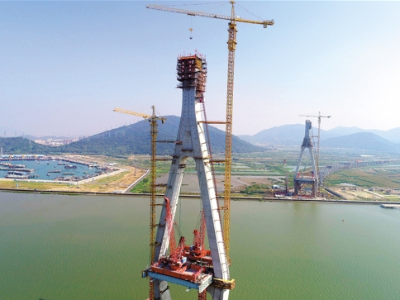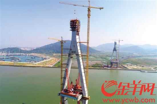 8日,珠海洪鹤大桥最高的主塔(168.484米高)顺利封顶。至此,洪鹤大桥4个水滴形主塔全部施工完成。