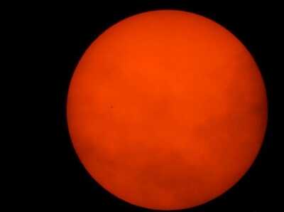 11月11日,罕见天象奇观“水星凌日”震撼上演。水星变身一颗“小黑痣”,在太阳表面缓缓“爬”过。所谓“水星凌日”,是指当水星运行至地球和太阳之间,三者连成直线从而形成的现象。图为在法国Hede-Bazouges观测到的“水星凌日”天象。