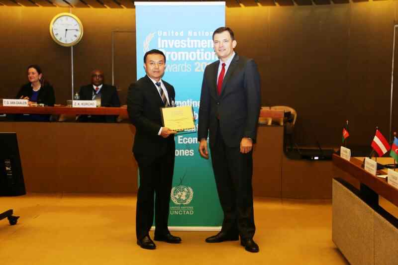 该奖项以联合国名义颁奖。会上,联合国贸易和发展会议(以下简称“联合国贸发会议”)高度赞扬广州开发区在促进国际投资及经济园区可持续发展方面的突出成就,并邀请白俄罗斯常驻联合国日内瓦代表大使兼常驻联合国秘书长尤里·安布拉泽维奇先生颁奖。黄埔区区长、广州开发区管委会常务副主任陈勇代表该区领奖。