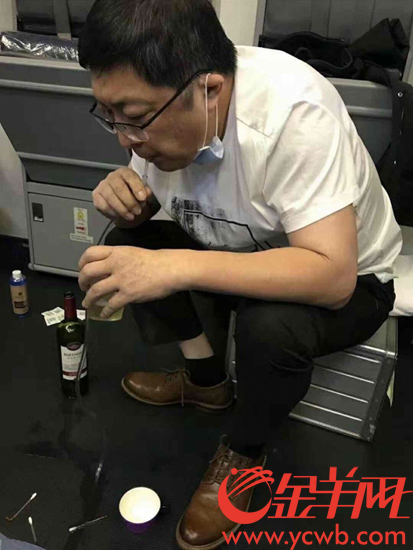 张红表示,一般在医院,就要尽快为患者把尿液引流。但是飞机上的条件有限,他们救治都是“就地取材”,还好乘务员都非常配合。“我们用便携式氧气瓶面罩上的导管、飞机急救箱的注射器针头、瓶装牛奶吸管、胶布等,临时组装了穿刺吸尿装置。老人的老伴同意后,肖占祥为他做了穿刺引流。”