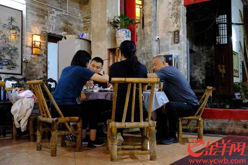 “现在提倡文化味,我觉得我这个店对惠州文化来说还是有些用,算是饮食文化和传统文化的结合。”苗永安表示,苗氏一族倾力让这祖屋充满文化韵味,让食客了解苗家文化、惠州文化。他们整理了中营守备署的资料,大堂里悬挂着苗家杰出人物的简介和祖屋复原图,现在老店已成为远近闻名的有文化味的网红餐厅。“有的客人来吃饭,顺便看建筑;有的客人来看建筑,顺便吃饭。大家看完都说保护得不错,我们也都很开心,这是双赢。”