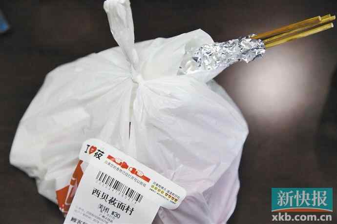 11月26日中午,新快报记者在岗顶附近分别点了西贝莜面村、外婆家、麦当劳、佬麻雀、陈记顺和的5份外卖,测试食安封签的实际应用效果。结果显示,5份外卖中,有4份贴上了食安封签,但效果却并不尽如人意,只有外婆家的外卖采用了正确的封签贴法,也就是将包装袋打结扎紧,将封签环绕打结处粘好,两端粘牢。