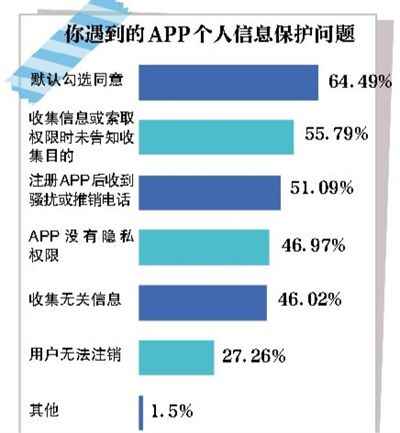 根据通报,此次公安部要求100款APP整改的主要问题包括无隐私协议、收集使用个人信息范围描述不清、超限索权等。而根据南都个人信息保护研究中心发布的《2019个人信息安全年度报告》,在普通用户看来,默认勾选同意、收集信息未告知收集目的、注册APP后收到骚扰或推销电话是最为严重的个人信息保护问题。