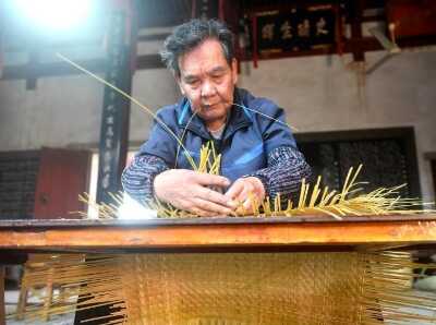 12月17日,竹编艺人正在制作竹编工艺品。福州市仓山区盖山镇郭宅村竹编历史最早可追溯到唐末宋初,所产竹编制品既有实用的农具、日用品,也有装饰用的工艺品,而被誉为“八闽竹器第一乡”。 中新社记者 吕明 摄