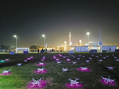 烟花汇演开始时将出现“20”字样烟花,寓意澳门回归祖国20年。此外,无人机将组合成大三巴牌坊及港珠澳大桥等图案,以及“澳珠一家亲”等字样,巧妙结合焰火技术和各种前沿科技,精心呈献一场壮丽璀璨、形式新颖、感动人心的烟花盛宴。