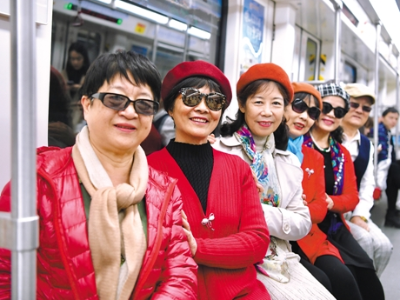 6时整,21号线员村站首趟列车发车。车厢内明亮整洁,温度适宜,车厢内最引人注目的莫过于一群年过半百的叔叔阿姨在开心自拍,当天他们盛装打扮来乘坐首班车。