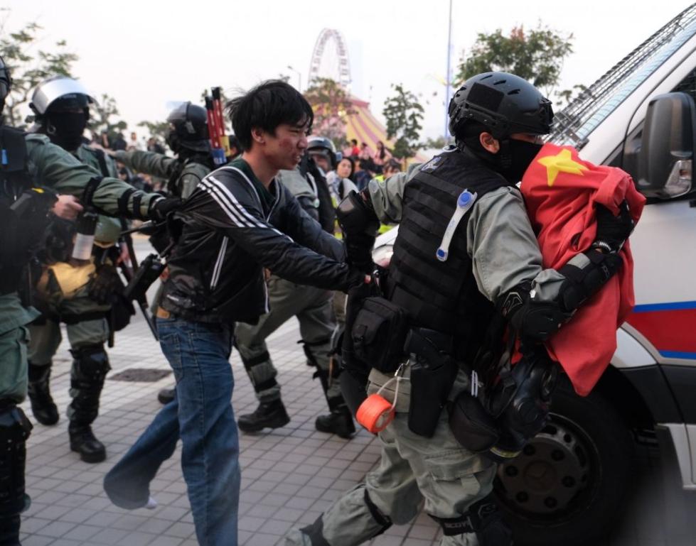 报道提及,警员在集会现场举起黑旗,要求暴徒散去,期间一名防暴警员一度拔枪示警。 其后有暴徒用水马和雪糕筒等物堵塞道路。警员驱散暴徒,并拆除路障,现场交通恢复。在中环码头天桥桥底,防暴警员截停多人,拘捕至少5人。