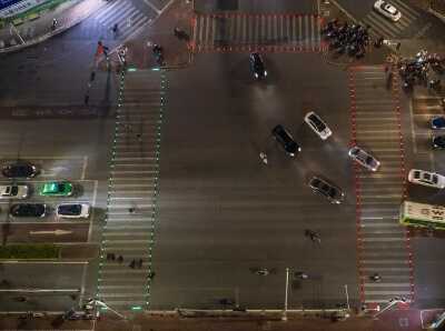 12月23日晚,航拍广西南宁双拥锦春路口的“发光斑马线”。广西首个“发光斑马线”项目于近日在该路口启用,引起各方关注。中新社记者 陈冠言 摄