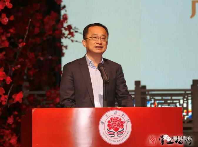 梅州市委常委、宣传部部长陈晓建介绍广东汉剧振兴工作情况。