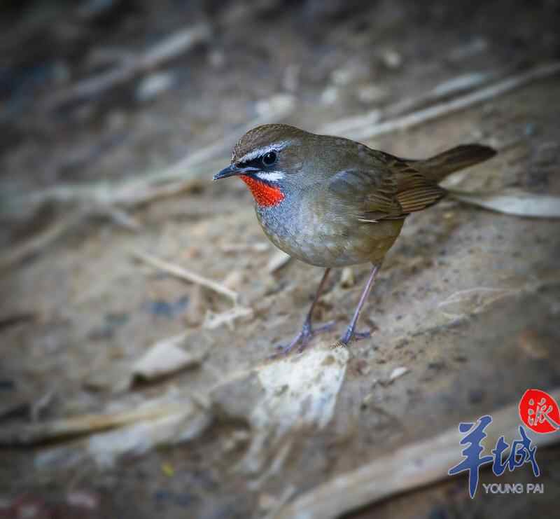 红喉歌鸲俯落到地面上 周纪刚 摄