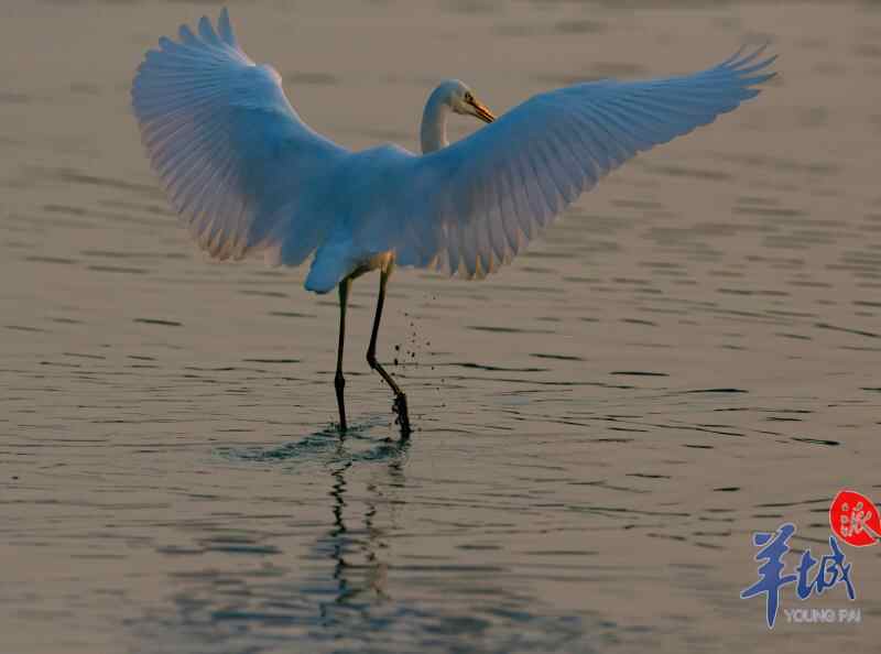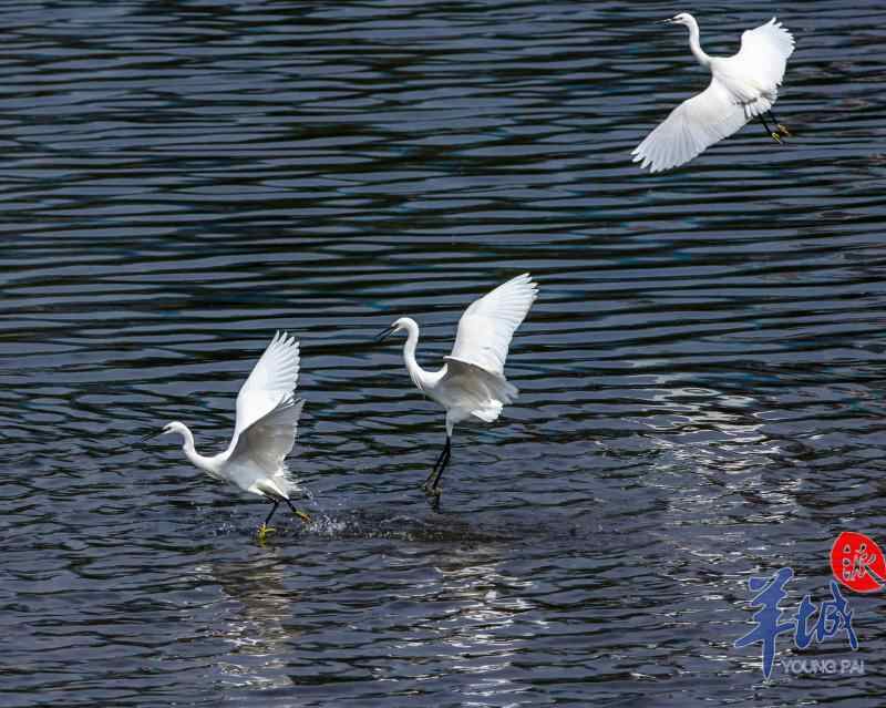 小白鹭在湖面上嬉戏 周纪刚 摄