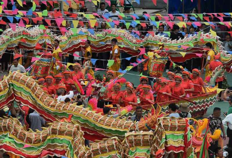 大亚湾霞涌镇霞新村村民边唱渔歌边舞龙 陈竟辉 摄