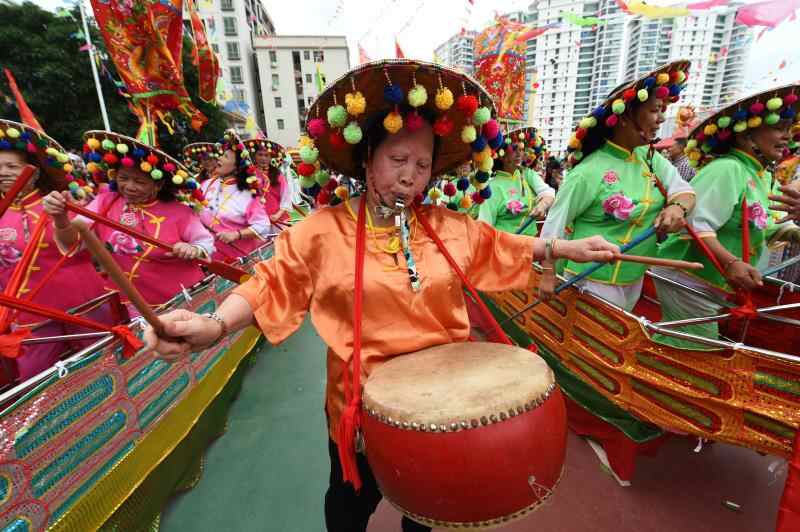 大亚湾霞涌镇霞新村村民边跳船舞边唱渔歌 陈竟辉 摄