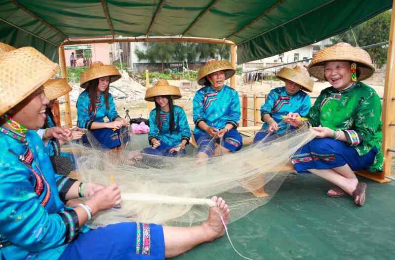惠东县巽寮渔民唱着渔歌飞梭织网周胜金摄