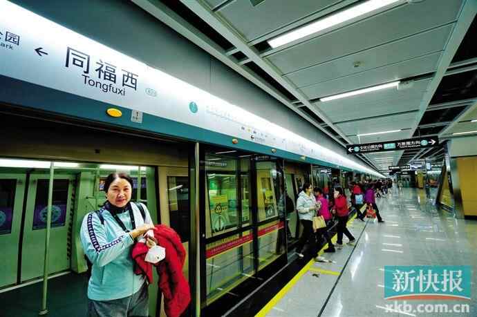 新线宽敞明亮的站台让打卡市民赞叹不已。家住同福中的冼阿姨在同福西站洗手间门口竖着大拇指对工作人员说:“新线设施太好了,(我)真的好有福气!”